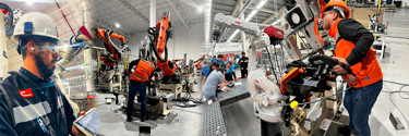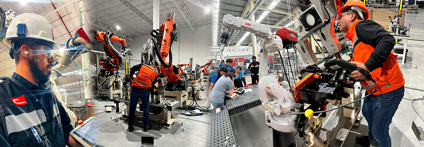 Entre ellos se incluyen procesos de soldadura SPOT y MIG para uniones metálicas, manejo de materiales, aplicaciones de paletizado para flujos de empaquetado, aplicación de adhesivos RTV y sellos automotrices.